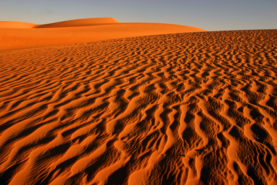 The infinity of the Sahara at the edges of Chinguetti, a medieval trading centre and sacred city in northern Mauritania.