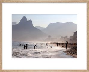 The end of an energetic afternoon on the legendary Ipanema beach in Rio de Janeiro, Brazil. Just as famous is the backdrop to this scene: the peak of Sugarloaf Mountain or Pão de Açúcar.