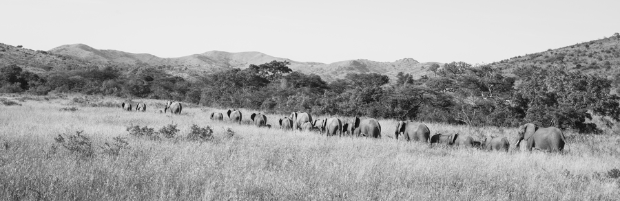 How can one not be transported back to childhood memories of "The Jungle Book" when faced with this parade of elephants from the HluHluwe-Umfolozi Park in South Africa? They slowly tread in perfect harmony with their surroundings, unknowingly co-creating a blended composition.