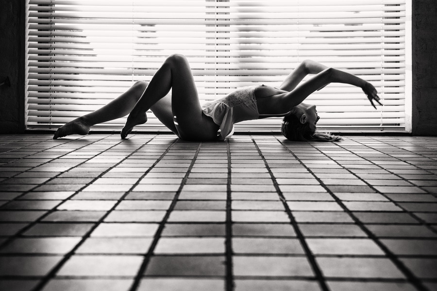 "Loft" is a series inspired by the direct sunlight hitting these huge loft windows with a bright natural glow, creating a setting of strong contrasts between highlights and shadows. The straight lines from the room generate an equally interesting pattern with the curved lines of the human body.