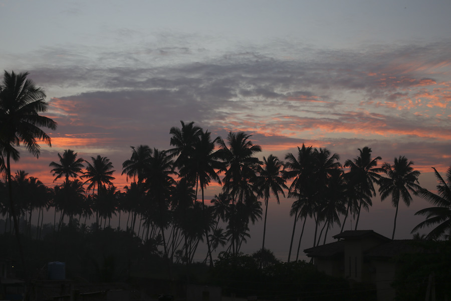On the island of Ceylan, next to the town of Weligama on the south coast of Sri Lanka, the horizon is made up of abundant lines of palm trees. The colourful blend of this particular sunset renders this dreamy landscape even more surreal.