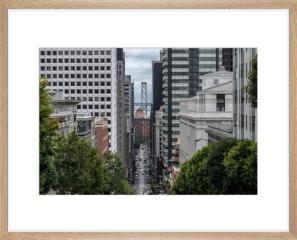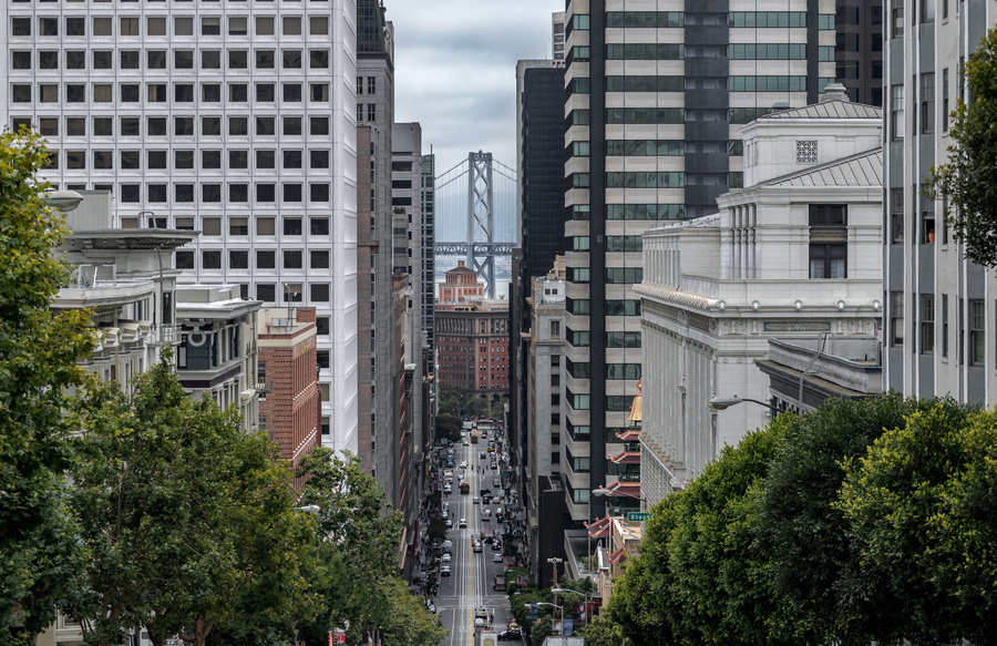 California Street is one of the longest streets in San Francisco, and includes several important landmarks like Huntington Park and Grace Cathedral. Finding the strength to climb the steep street results in this magnificent glimpse of the Bay Bridge piercing through the buildings and treetops.