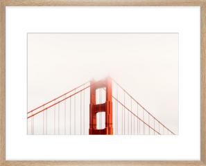 An incredibly atmospheric shot of the iconic Golden Gate Bridge in San Francisco. The prevalent mist offers a powdered backdrop to the bridge, giving the architectural highlight the shine it deserves.