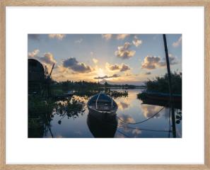 There is a memory behind each photograph. That day, Olivier decided to bike in the countryside to enjoy the sunset and stopped at this exact spot. About two minutes after taking the shot, the fisherman who owns this small boat showed up and invited him along. They were three people on the boat, with the fisherman throwing out his nets and rocking the boat side to side, while Olivier started to get a little worried for his gear. But those are the experiences you live when leaving the beaten track and having true adventures.