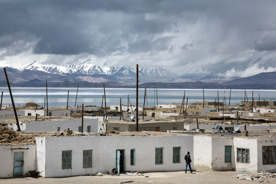 A solitary man walks through the village of Karakul, on the banks of the Karakul Lake in East-Pamir (Tajikistan). Local residents live with their herds of yaks, flocks of sheep and trips of goats. At an altitude of 3900 meters above sea level and surrounded by high peaks that block out the humid air, the valley only benefits of an average of 30 millimeters of rainfall each year, making it one of the most arid locations in Central Asia. From October to May, the lake is frozen solid and the entire region becomes completely secluded from the outside world.