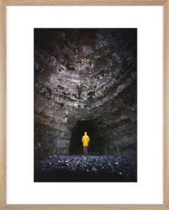 Seemingly lost in front of one of the many awe-inspiring caves along the beaches of Normandy, our protagonist cuts a dapper figure in her little yellow riding hood, as if at the start of her own fairytale, ready to enter and face the incertain future...