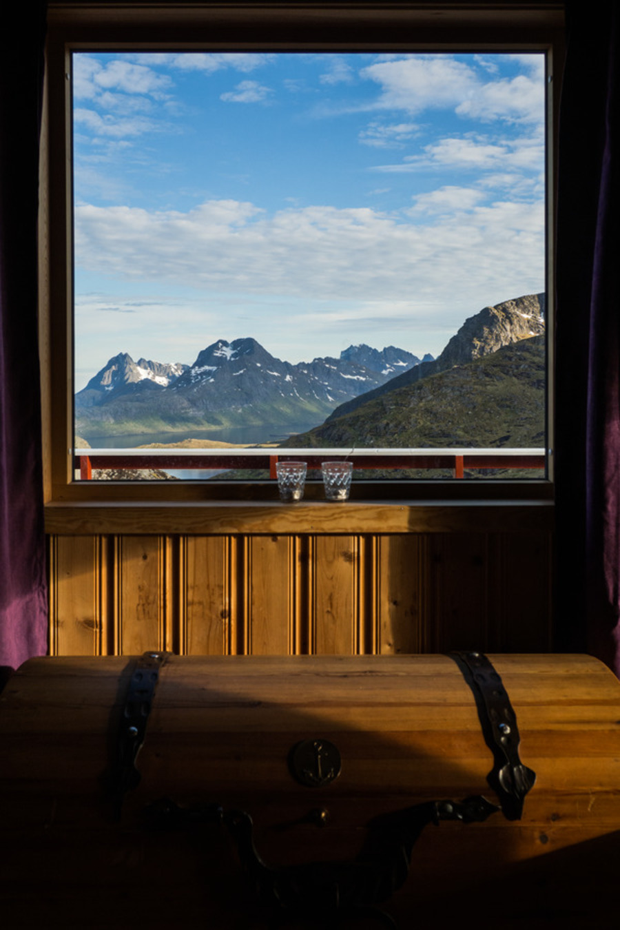 After a rather long hike, Evelien put up her feet in her cabin and was mesmerized by the view framed right before her eyes.